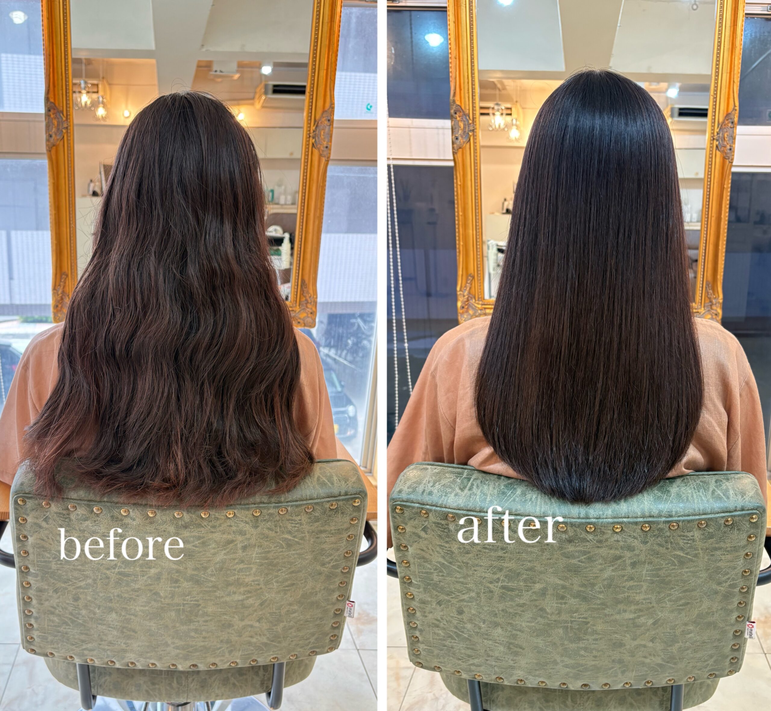 鹿児島店のカラーエステの施術実績 綺麗な黒髪にしたいです♪ dearskagoshima 2025年7月4日 こんにちは♪ いよいよ梅雨が明けて夏本番になりましたね!7月も、沢山のお客様にご予約頂いております^ ^ お写真のお客様は、日焼けした髪がパサパサと乾燥し、髪が明るく見えるのが気になられるとの事で、髪質改善トリートメントをしながらカラーエステで黒髪に仕上げました(^^) 手触りがサラサラになり、毛先まで潤った感じを体感頂き、大変喜んで頂けました♪ 今からどんどん日差しが強くなってきます!ご自宅では限界がある髪のケアをぜひ私たちにお任せ下さい(^^) ご予約お待ちいたしております。